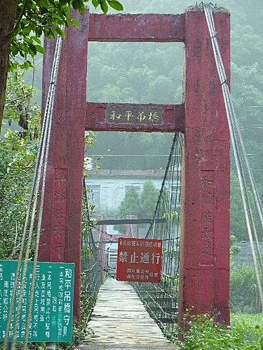 附近已經封閉的和平吊橋,不過還是有看到當地的居民還在走