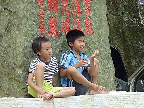 離開營區前往獅潭鄉仙山--兩位弟弟看到有得坐,就毫不考慮的輕鬆坐,鞋子拖掉,好像當地的原住民
