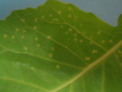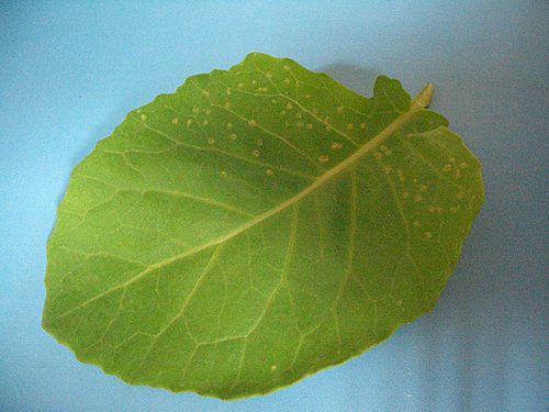 98/02/21星期六,早上用稀釋過後的香茅油噴灑作物,以對付銀葉粉蝨,但是卻發現高麗菜上出現許多小白點,不知道是蟲卵還是生病了,不知道該如何是好,只好再度請教專家.