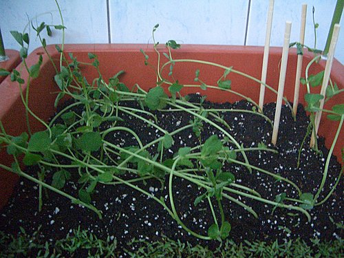 豌豆苗長太高已經倒了,本來想拿竹筷子讓它爬,還是失敗,乾脆讓它自由生長吧