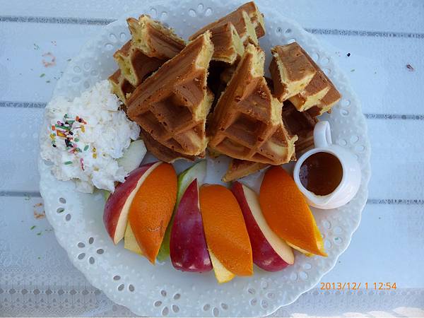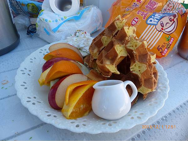 一份200元,用抵用券換的。我們A區的營位一位800元,送200元抵用券,沒有甜柿可以買,只好換鬆餅。
