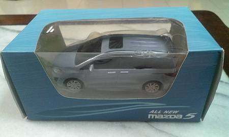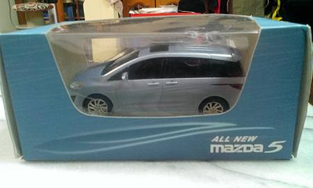 最近因為剛換新車(All New Mazda 5),因此想要一台馬五的模型車,網路上拍賣都找不到,只有1:18的,都要將近四張小朋友,之前在保養廠也有看到在賣,要價5600元,實在是太貴了,在網路搜尋,意外發現在01論壇有人要交換迴力車,剛好有馬五而且是水藍色的,於是積極聯絡,沒想到對方竟然住同一縣市,而且不遠,於是相約用之前保養送的TOYOTA YARIS的迴力車交換。