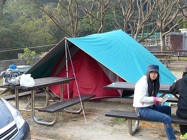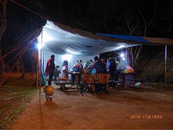103/01/18星期六,天氣晴,雖然冷,但是沒有下雨,就是露營的好日子,北投貴子坑露營場是臺北市政府工務局大地工程處管理及維護,任何人都可以免費申請使用,但是露營必須以團體20人以上,才可以申請喔!