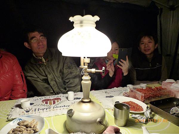 正餐後在逸杰兄的客廳帳泡茶聊天,欣賞美麗的汽化燈。沒有風的夜晚,真好。