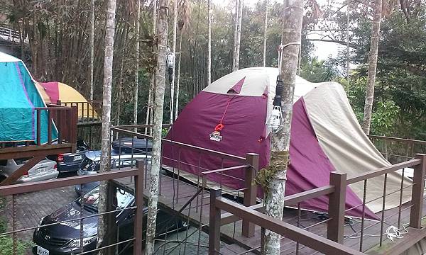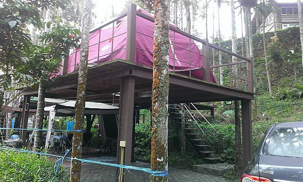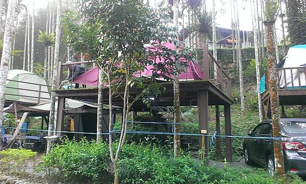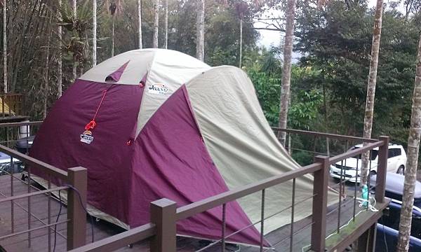 車子停下面,帳篷搭樓上,不過費用並不便宜,算人頭,大人350,國小200,我們家四大一小,一夜是1600。