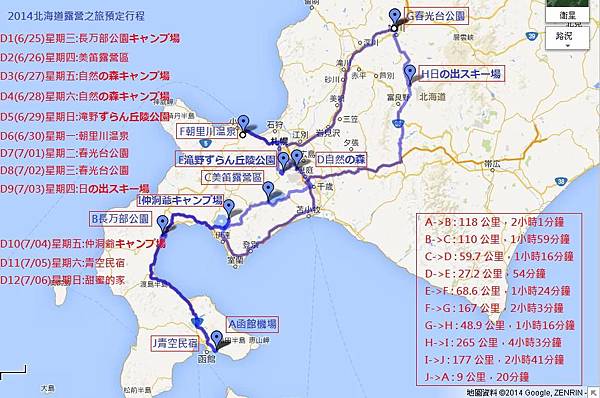由於因為機票的關係,我們這次是函館機場進出,所以行程的安排大致的走法如下圖: