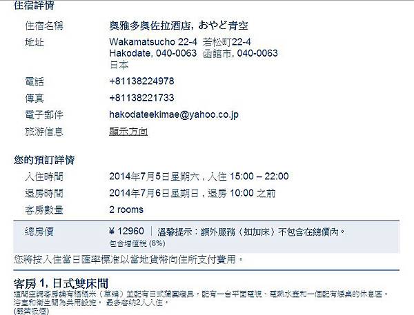 機票和車子都預定好了,營區除了國營瀧野鈴蘭丘陵公園要事先上網預約,其餘的都不用事先預約,萬一客滿,露營書帶著,隨時可以有備案喔!12天的露營應該會很累,所以我們安排最後一晚住在函館的青空民宿,3/18利用Booking網站,上網訂了兩間雙人房。兩間日幣12960円。