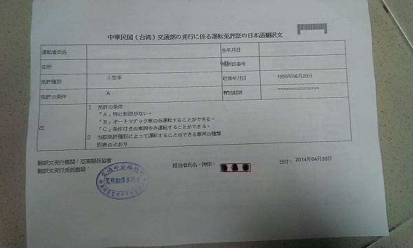 4/30至監理站申請日文駕照翻譯本,順便換發過期的駕照,其實現在在台灣駕照已經沒有期限,但是舊駕照上的有效日期是過期了,怕在日本有麻煩,乾脆換一張新的。除了日文翻譯本,台灣的駕照也要帶喔!