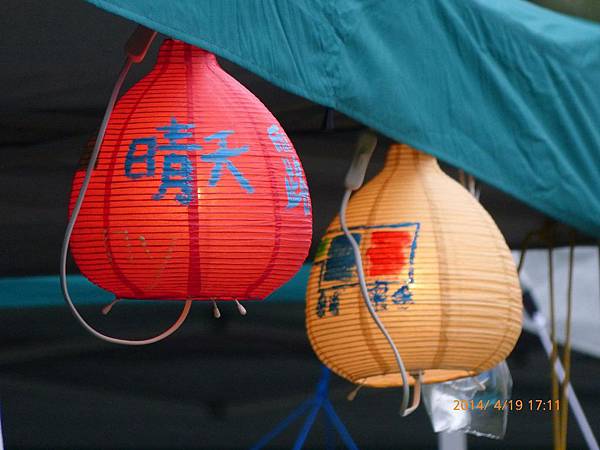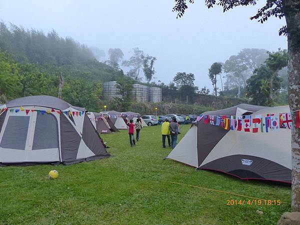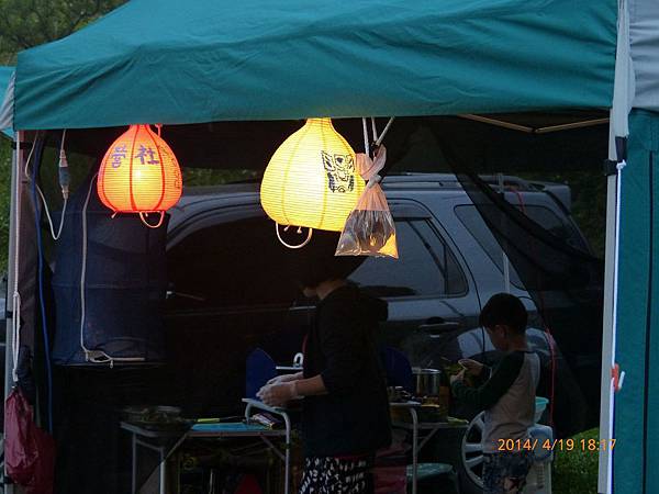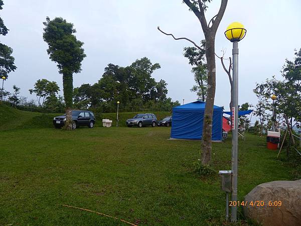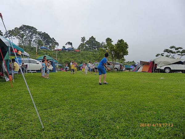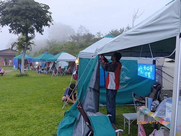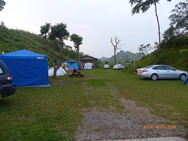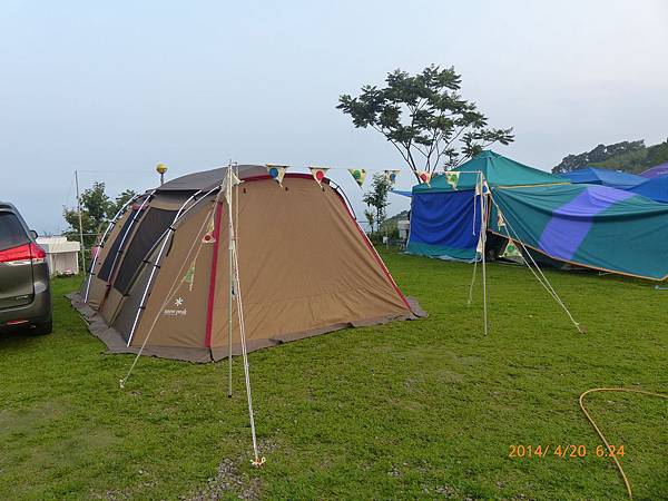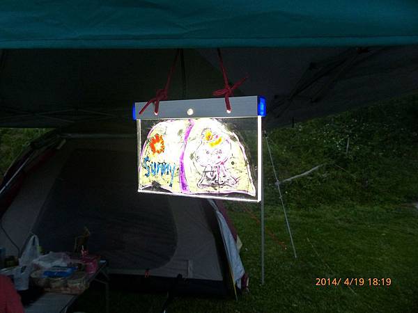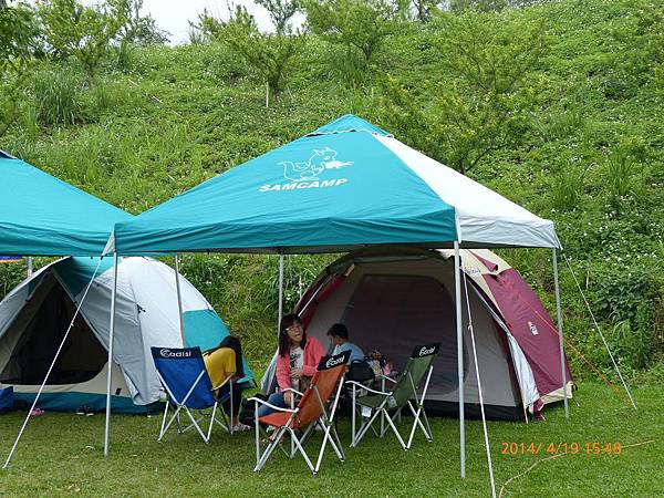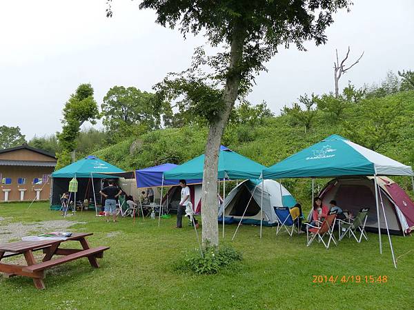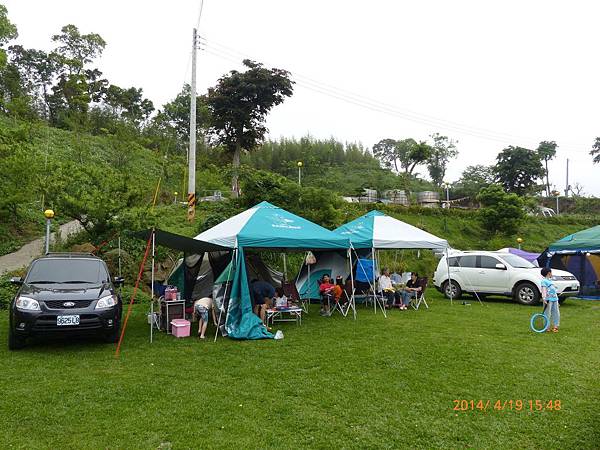 103/04/19星期六,天氣晴,距離上一次露營已經又一個多月,今天的天氣真是好,姊姊上午還是要上課,加上爸媽兩人在教會還有課程,課程結束後大約11:30,媽媽去買便當,爸爸回家開車接阿嬤,一起去學校接姊姊下課,接到姊姊已經12:30,大家在車上用餐,大約14:30底達營區。先把今天的家搭好。