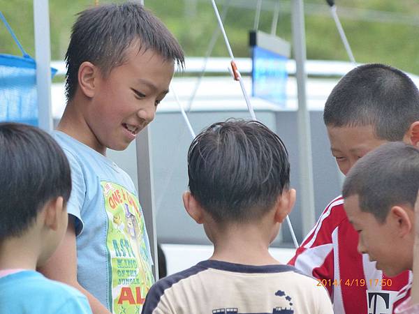 和營區的其他小朋友一起玩躲避球