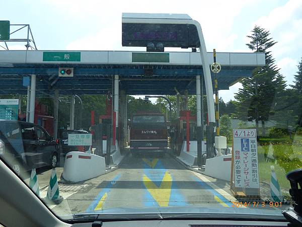 我們有租ETC,所以走ETC車道,ETC車道有柵欄,一開始以為沒開放,等進入後,偵測到你有ETC,柵欄就會升起。