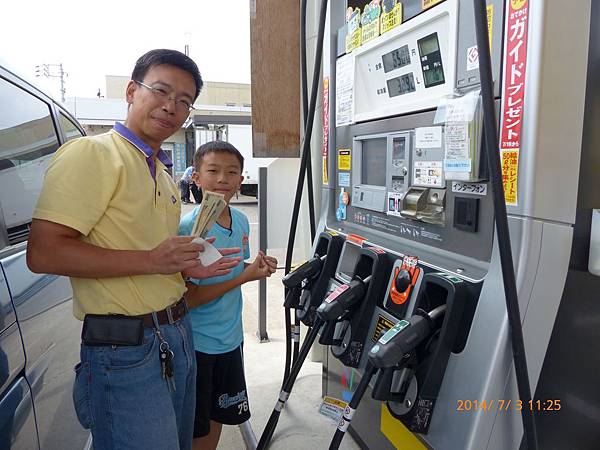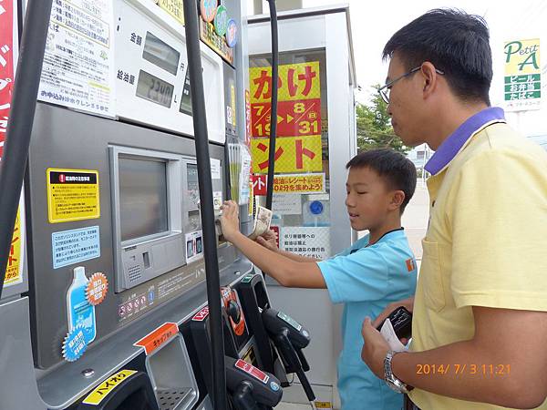 加完油後機器自動找回零錢,還挺方便的,台灣都沒有自助加油,跑到日本去自助加油。