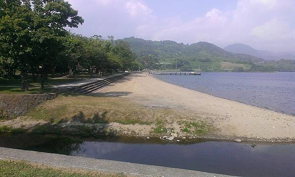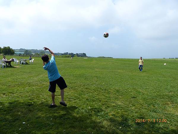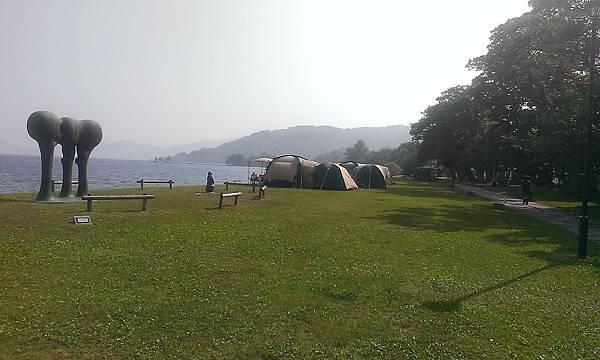 於是我們回到水の駅旁邊有個露營區,有沙灘,有草地,感覺還不錯