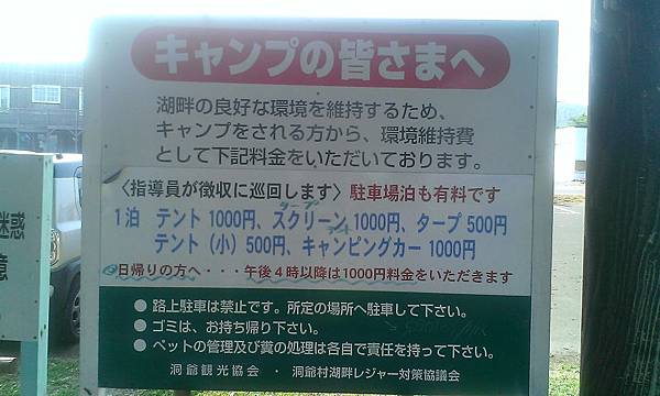 這個營區應該是洞爺湖曙露營場,管理人員是巡迴管理,遇到才收費。
