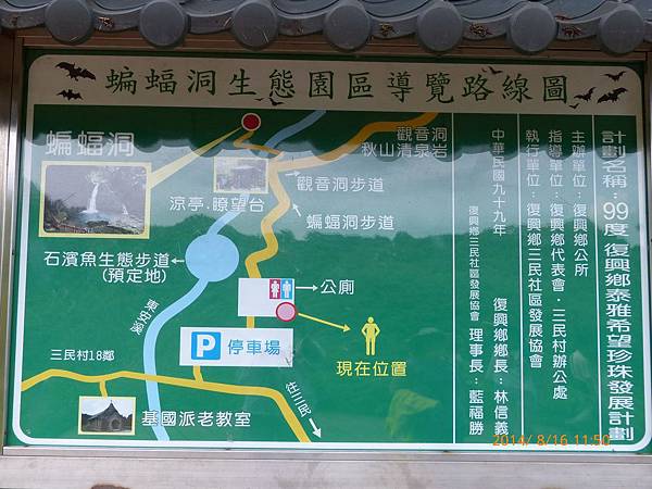 103/08/16星期六,天氣晴,自從北海道露營回來之後,這是第一次露營,這次的營地是在復興鄉的巫婆農場。一早出發看過營地之後,先到附近的蝙蝠洞走走。