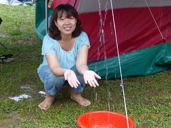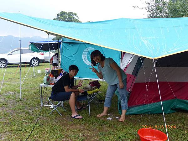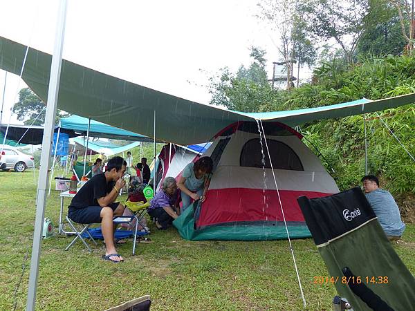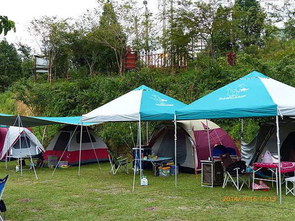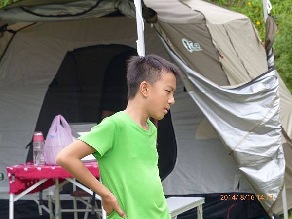 天氣很熱,搭好帳篷