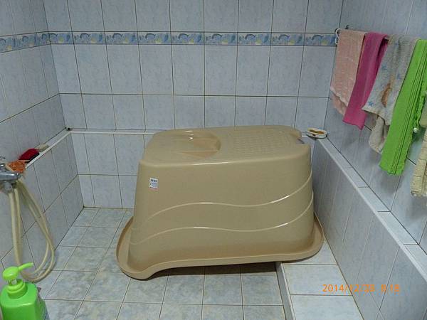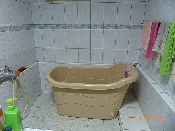 在日本免治馬桶很普遍,日本的另一個生活文化是泡湯,所以103/12/23在網路上也買了一個泡澡桶,回家來泡湯。因為賣家剛好就在附近,所以就去搬了一個回家。