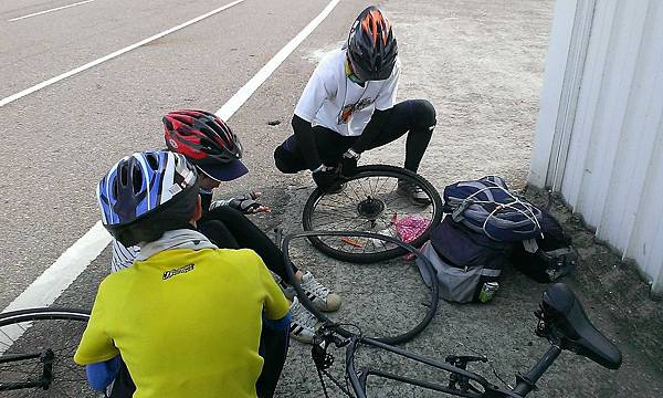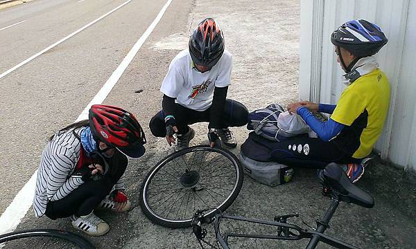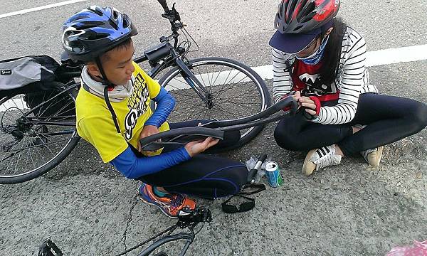 說也奇怪,把拔的內胎換完,騎沒多久,又會慢慢消氣,騎一騎又停下來打氣,想說民宿快到了,撐一下,到了民宿再說。