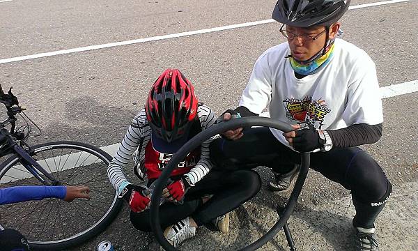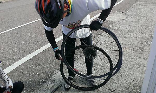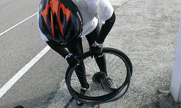 把拔的車子後輪沒氣了,雖然有準備工具和備用內胎,也有上網看過如何更換內胎,但是畢竟沒有實戰過,第一天就中獎,真是幸運嗎?