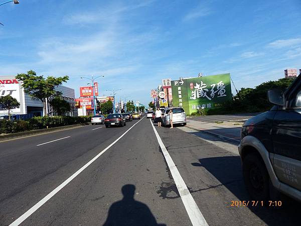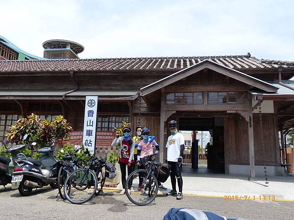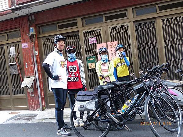 104/7/1星期三,天氣晴,全副武裝,環島列車正式啟航。早上五點起床,整裝,大約六點十五分出發,出發前於門口合影。