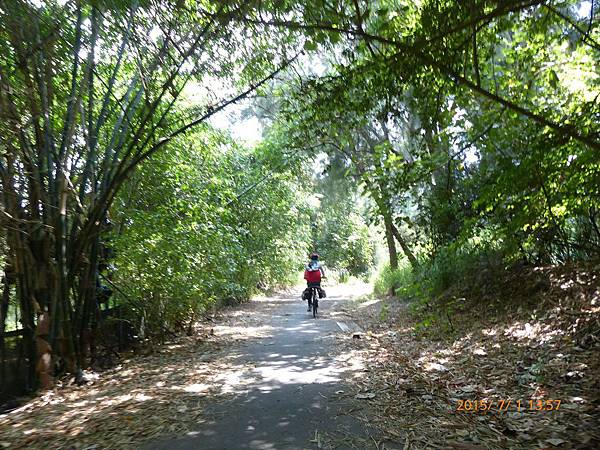 兩個小孩腿力好,已經騎到看不見了,風景美,只好自拍一下