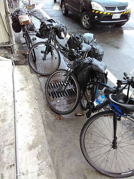 看看我們的行李,防雨大作戰,旅館沒有提供早餐,我們在附近的早餐店用餐後,攻壽卡出發。大約八點出發。