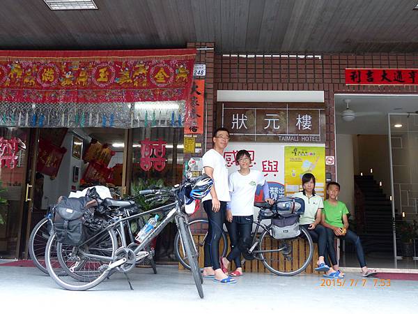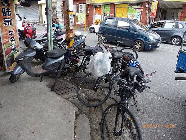 104/07/07星期二,天氣陰轉雨,一早起床,天氣還不錯,無風無雨,昨天爬壽卡,還騎了七十幾公里,晚上真的很累,一下子就睡著了,今天還沒吃早餐,離開飯店已經快八點了。