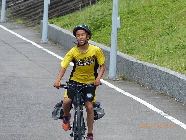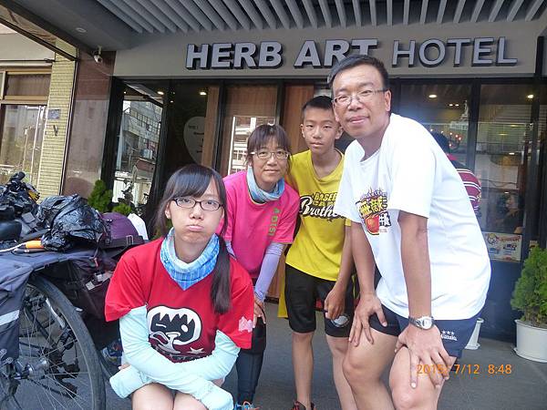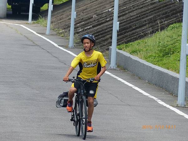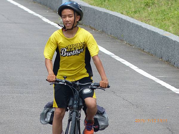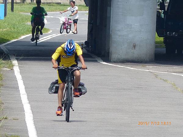 104/07/12星期日,天氣晴,今天是環島的最後一天,剩下五十幾公里,想說應該中午左右就可以到達,所以除了媽咪,大家都輕裝騎車,相當輕鬆。快九點才出發。出發時遇到同住飯店的一男三女,老師帶著學生環島十四天,今天也是最後一天,但是他們要到關渡。環島一週,才知道環島的人還真多。
