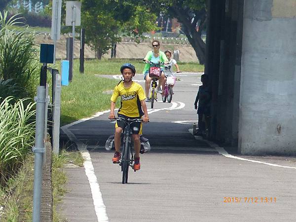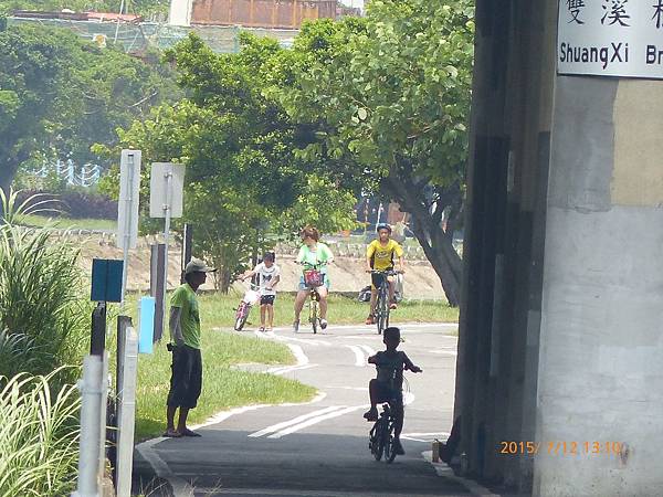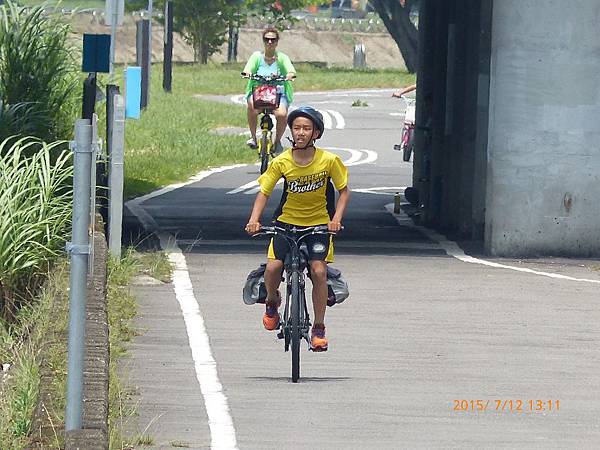 河右岸第一次騎,弟弟騎太快,衝過頭,走錯路,正在回頭中,此行十二天的環島,弟弟這種情形還真多,他大概比我們要多騎十幾公里吧!