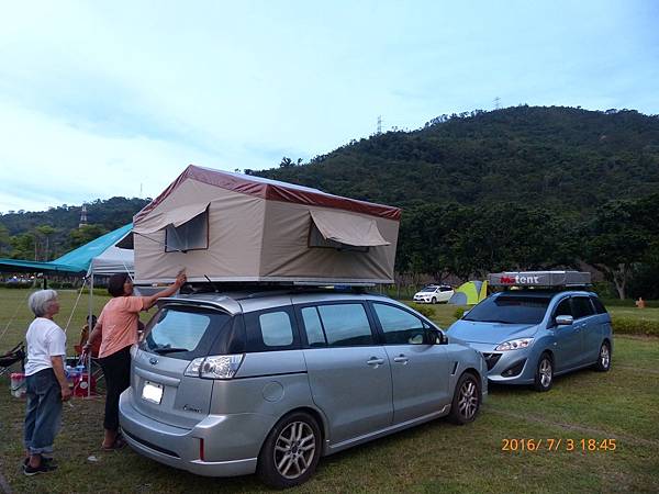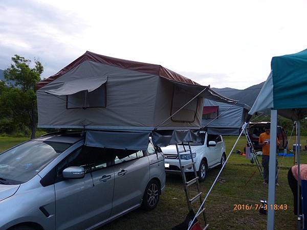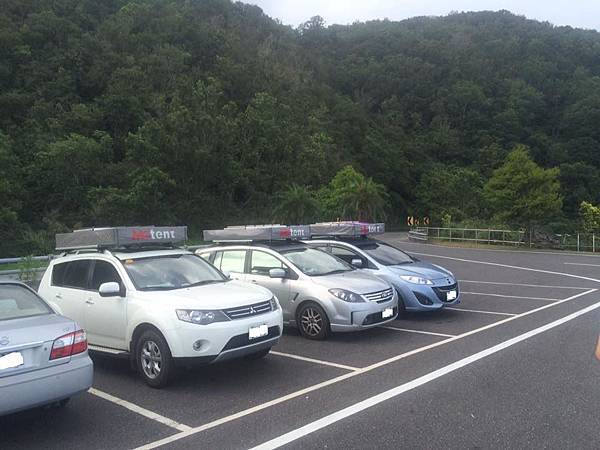 途中在蘇花公路入口附近,與另外兩家晴天fun心睡露營社的夥伴會合,在這裡我們第一次三帳合體,雖然不是很壯觀,但是這是我們這個社團僅有的三頂車頂帳,準備開始我們的露營環島之旅。