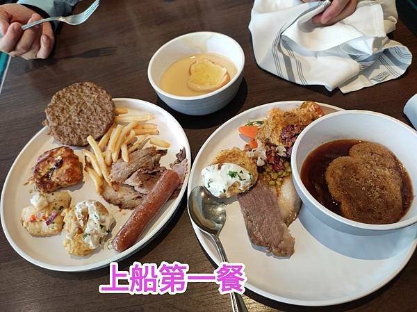 ,這次是自己第一次跟船公司買船票,感覺應該沒有旅行社包船,很國際,有很多外國人到基隆來搭這艘船,因為還不熟,所以常走錯位置,相信不久就熟悉它了,晚餐吃了二家餐廳,一個是12樓的Garden coffee 自助餐廳~有好吃的牛肉片& 6樓的Windows 餐廳<點餐>~有別人說好吃的紐約客牛排及比目魚餐,感覺都不錯⇨接著又回12樓的Garden coffee 自助餐廳,本想只看看,沒想到又拿了水果及甜點