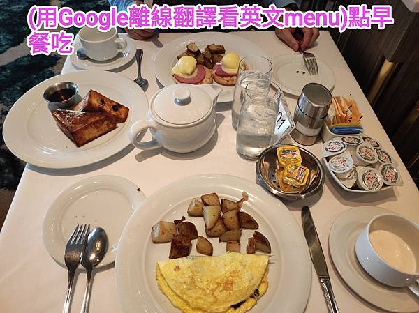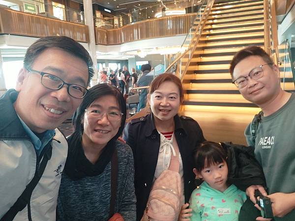早上7:00本想至12樓的Garden coffee 自助餐廳吃早餐,去到那發現人很多,未找到位置,就去6樓的Windows 餐廳點早餐吃(用Google離線翻譯看英文menu)⇨遇見網紅心爸心媽一家(在7樓星巴客旁位置休息時),好特別,第一次在船上有看到認識的人 (我們認識他們,他們不認識我們)