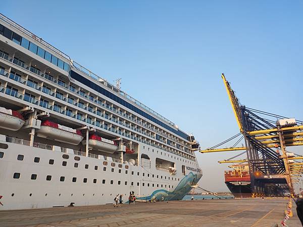 四方水上市場,吃酸辣合粉⇨Tiger park 不入園照相⇨21航站午餐+逛逛⇨Big C 逛逛+採買⇨回船,老公在群組看到別人有拍到美國軍艦至此港,真巧,回港路上真的有看到遠遠的軍艦⇨享受晚餐⇨10樓船頭餐廳看能否看到軍艦(天黑看不清